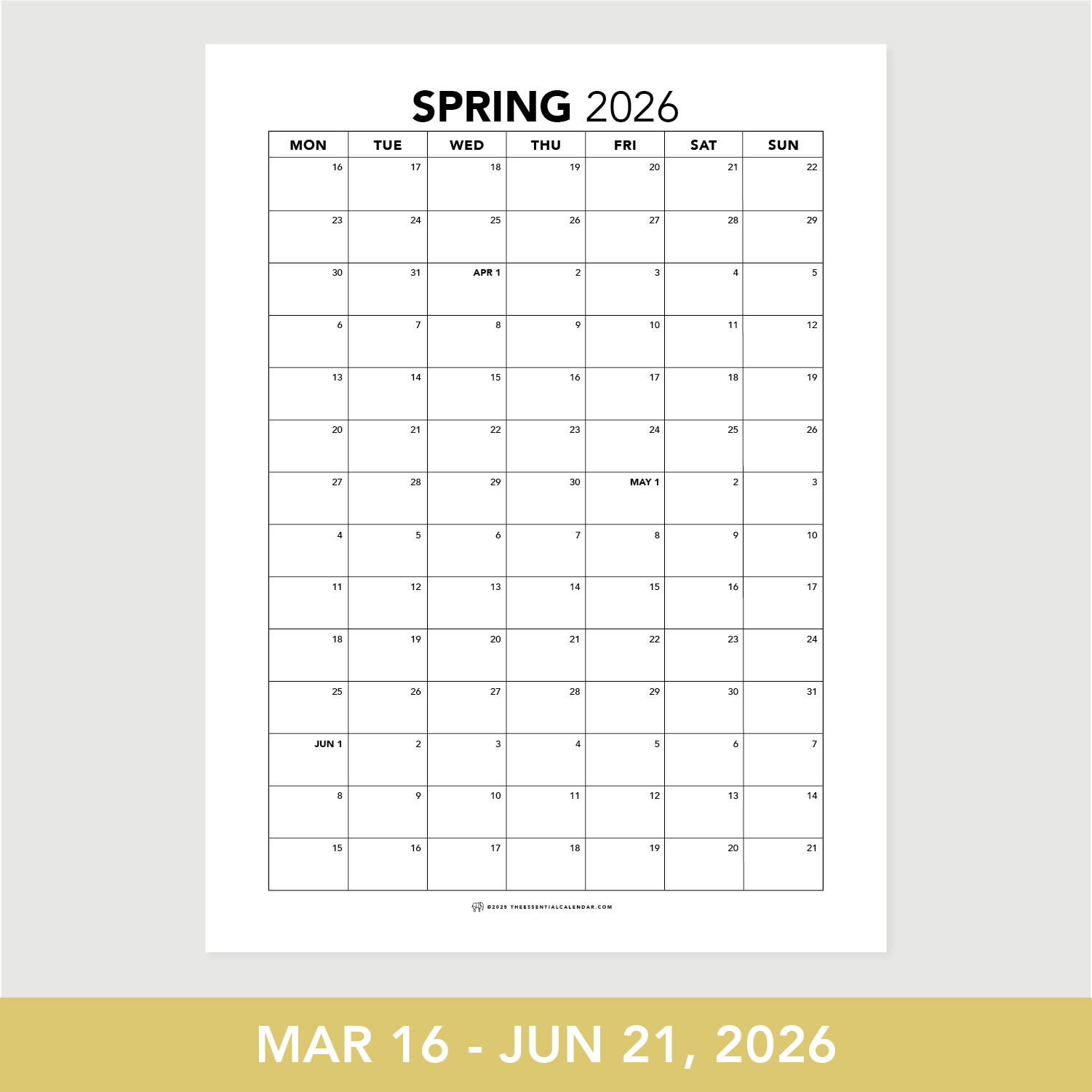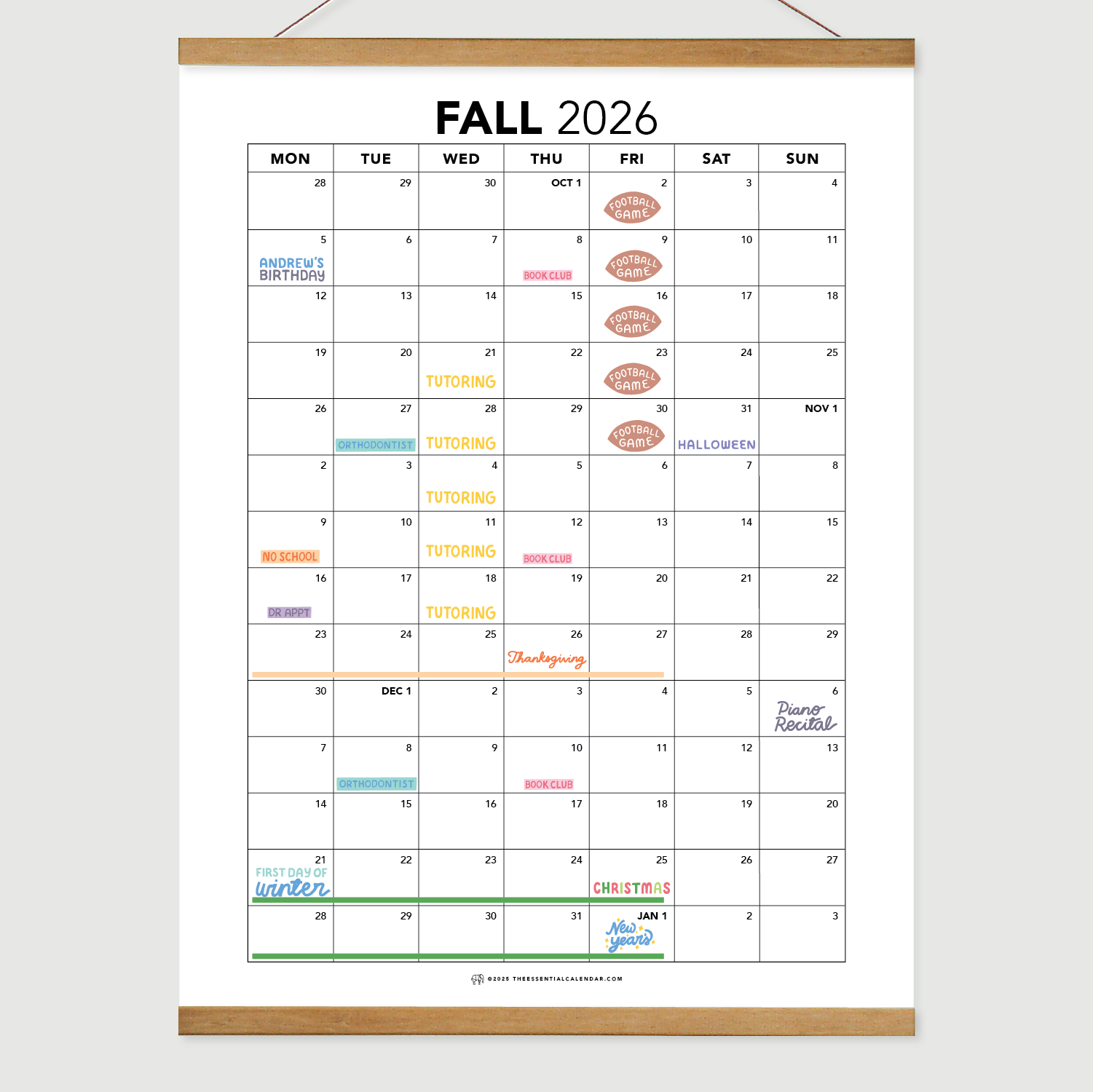 - FALL:Â Sept 28, 2026 - Jan 3, 2027