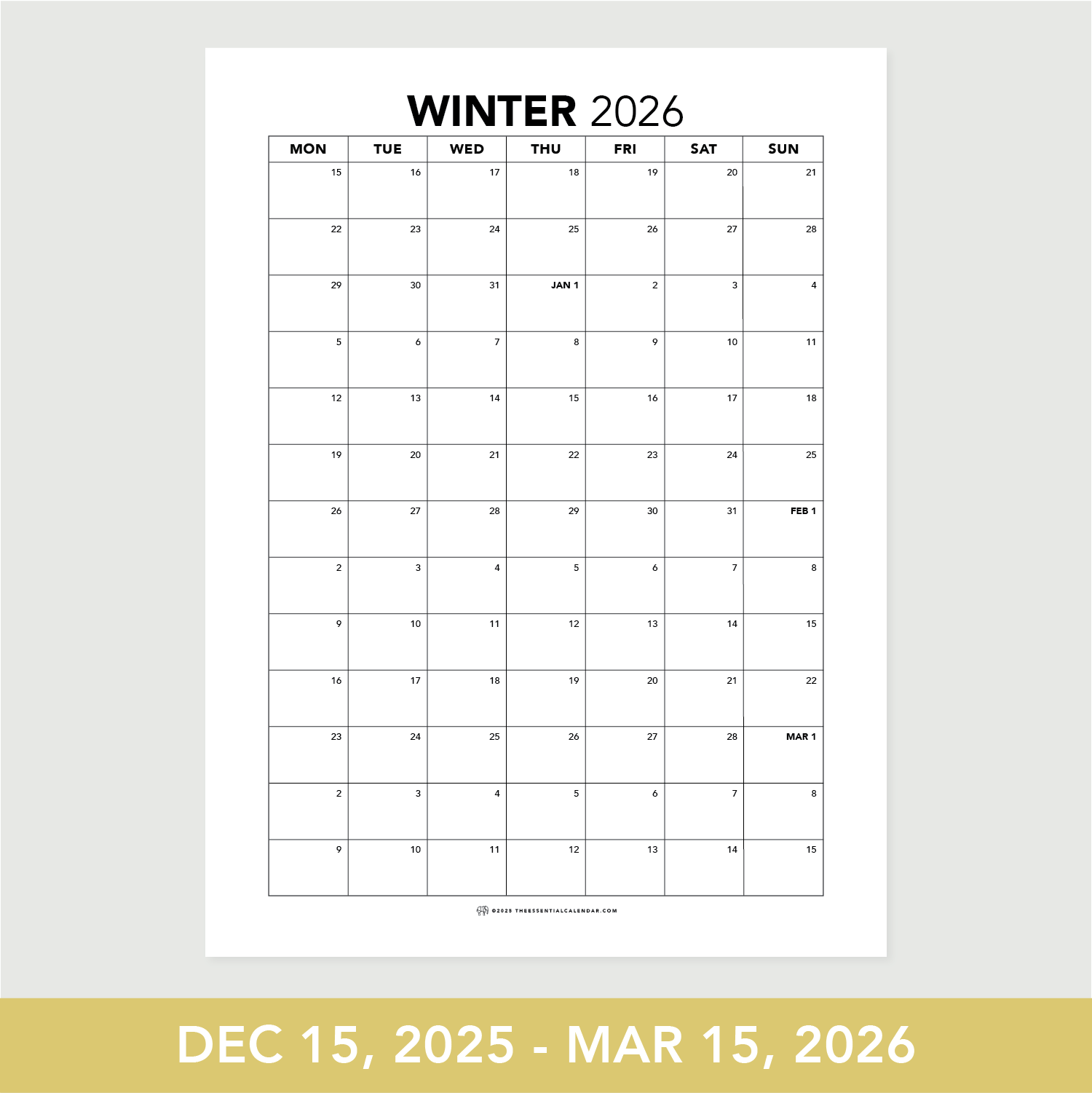- WINTER:Â Dec 15, 2025 - March 15, 2026