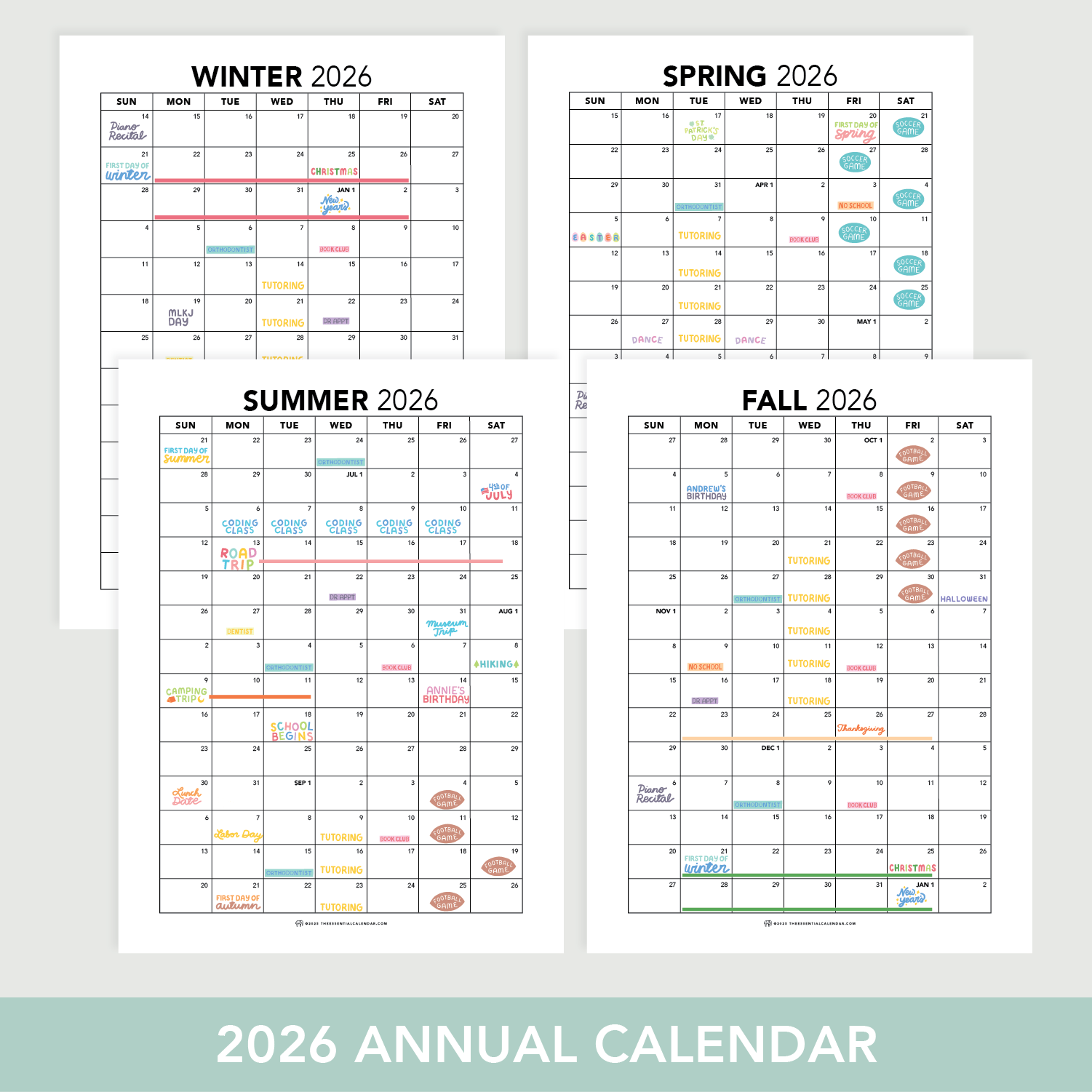 Welcome to a year of organized schedules with our 2026 Annual Calendar! đ Designed to help you navigate the happy chaos of family life, this essential tool keeps you ahead of the game, three months at a time.