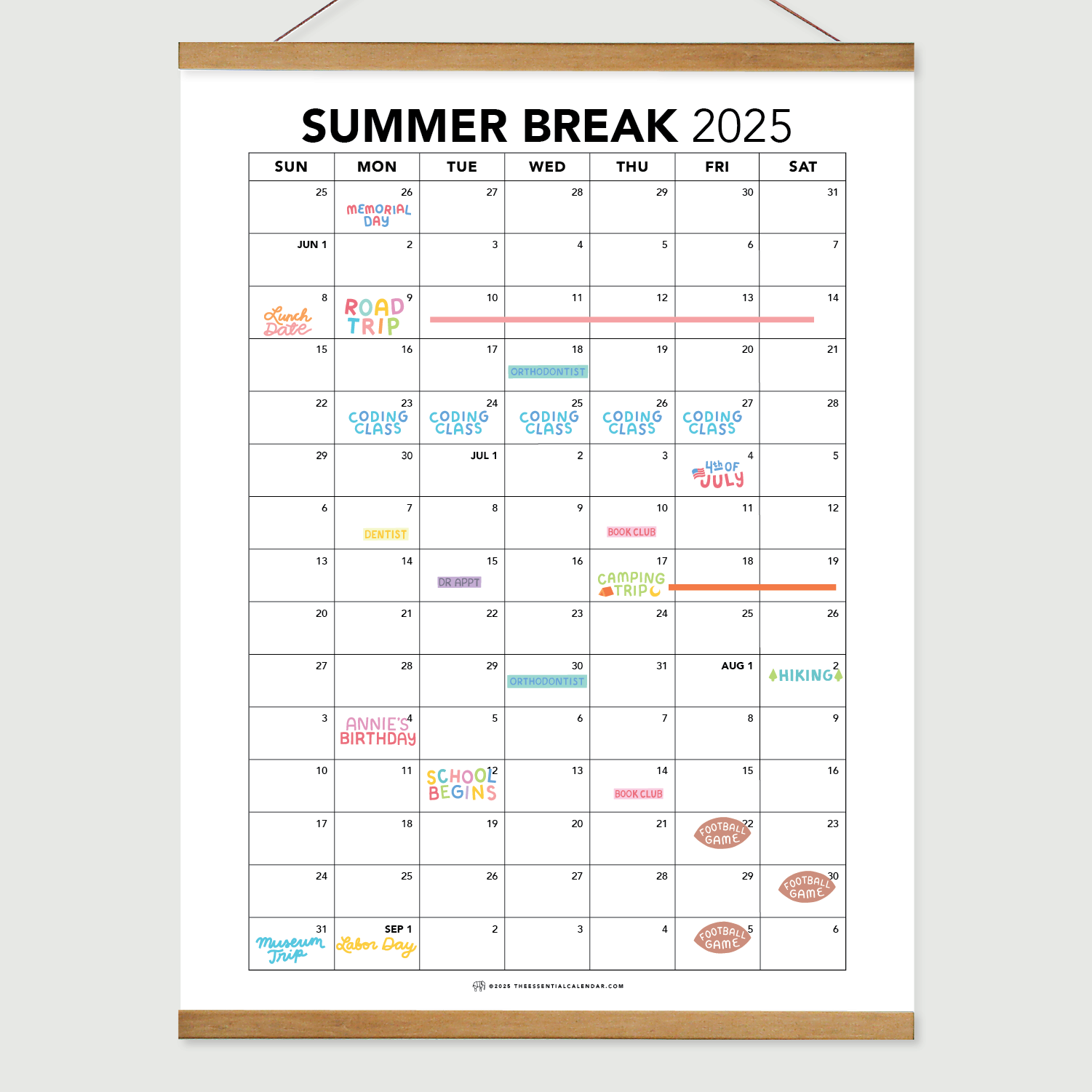 This calendar follows the seasons of family life—from summer break, back school + holidays, a fresh start in the new year, and the final stretch of the school year.