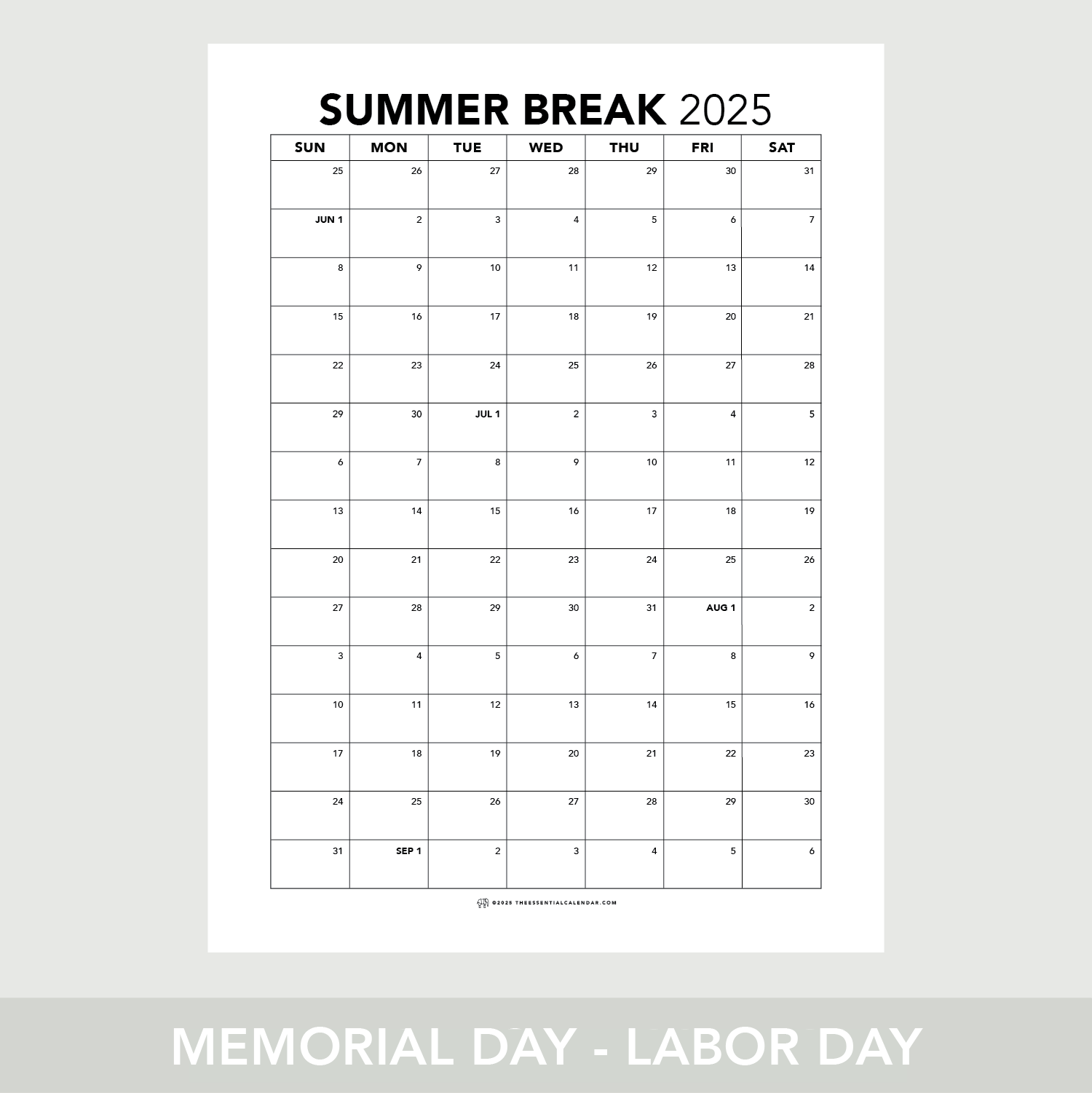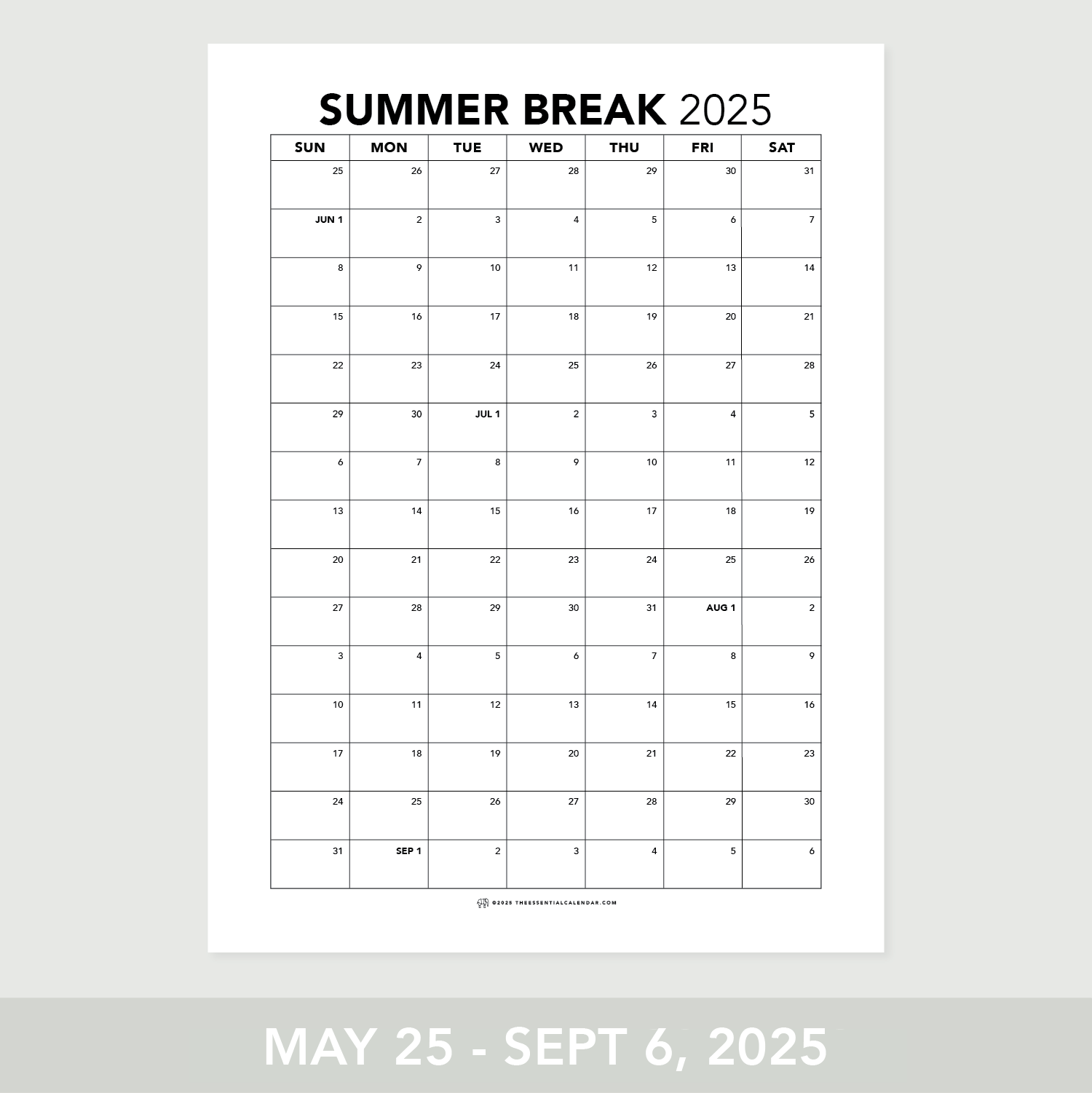 SUMMER BREAK: May 26 – Sept 7, 2025 (Memorial Day to Labor Day)